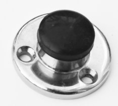 Polished stainless steel door stop with rubber bumper. Height: 3/4″ Diameter: 1 15/16″