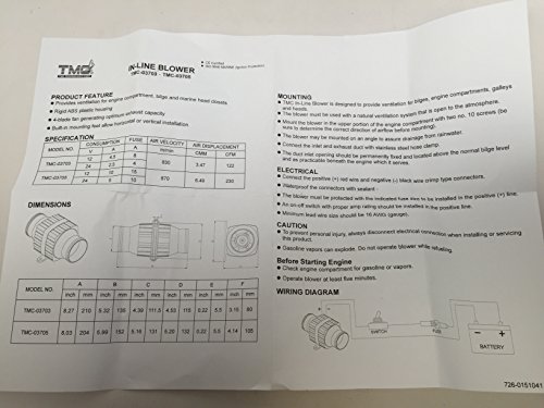 It is a white in-line blower. It supplies ventilation for engine compartment, bilge and marine head closets. It has rigid ABS plastic housing and a four-blade fan producing optimum exhaust capability. It additionally has a built-in mounting feet that permits horizontal or vertical installation. P13119WH