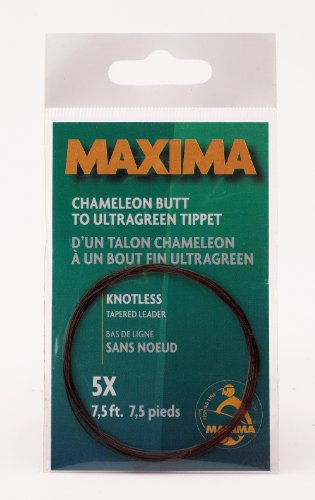 Two varieties of Maxima monofilament line with two distinct properties are fused into one to create the easiest leader for fly fishing. The suppleness of Maxima Ultragreen at the tippet section permits the fly to transport naturally and seem real at the water. On the butt end, Maxima Chameleon offers the correct amount of stiffness allowing the leader to roll over freely and lay out more smoothly. The original matt finish of the product with light soaking up properties makes this leader effective.