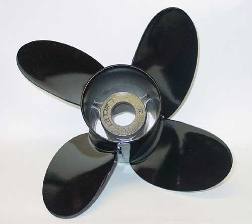 Mercury/Mariner/Mercruiser 4 blade aluminum prop 14-1/2″ x 18″. Includes the Flo-Torq II hub kit. Designed to suit Mercury/Mariner 135, 150, 175, 200, 225, 250 HP outboards and Mercruiser Alpha and Bravo One under 400 hp (3.0L, 4.3L, 4.3LH, 4.3L EFI, 5.0L, 5.0L EFI, 5.7L, 5.7L EFI, 350 MAG MPI). Four-blade performance at an aluminum price. The Alpha 4 is a phenomenal propeller for runabouts in addition to daycruisers. Bolt this prop on and your boat must get on plane quicker and stay on plane at a lower speed than with a comparable 3-blade propeller. Great watersports prop! For V-6 outboards and Alpha and Bravo One sterndrives. 4 blade die-cast aluminum. Durable high-gloss phantom black finish. Better acceleration and handling than 3 blade. These are all right hand rotation props. A left hand rotation for counter-rotating engines is to be had. (48 834853A45). 20″ Alpha 4 replaces 21″ three-blade prop 18″ Alpha 4 replaces 19″ three-blade prop 16″ Alpha 4 replaces 17″ three-blade prop Equipped with Flo-Torq II hub system