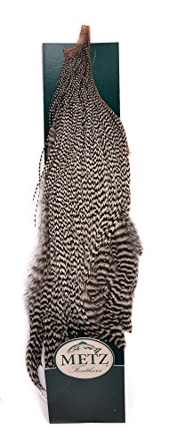 In the early 1970’s, Metz revolutionized the fly tying world by introducing the first genetically engineered hackle to the fly fishing industry. From the moment Metz necks were first viewed by a large cataloguer in New England, the fly fishing world knew that something special was coming to the market. First to produce true “dry fly quality” hackle, in a complete range of colors. A product that enabled fly tyers everywhere to imitate the natural insects more precisely than ever before. A product that enabled fly fisherman everywhere to float their “dries” higher and longer, staying drier longer, than ever before. Long before artificial floatants became the norm, Metz hackles were floating dries through the fastest of riffles. Stiff barbs, web free hackles, flexible stems, and a complete range of sizes are still the benchmark developed by Metz by which all other hackles are compared. Deep, natural consistent colors are the Metz trademark. No other company can reproduce consistently the colors offered by Metz. Stringent breeder selections coupled with strict grading procedures, guarantees top quality hackle, every time. This translates in to quality fly trying experiences, and quality flies. Quality has always been synonymous with Metz. The highest quality flies commercially available today are 100% tied with Metz hackle. Metz offers a complete line of feathers to meet your needs. Whether it be collars for nymphs, wings for dry flies and streamers, or saddle hackle for palmering, Metz carries a complete line. If you haven’t tried a Metz, or haven’t tried one lately, you may be missing out on the next revolution in fly tying. Satisfication guaranteed.
