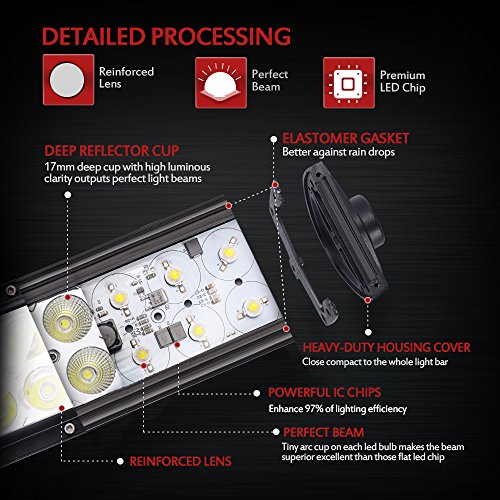 Superior visibility: This 36w light bar combined with spot and flood beam, contains 3w high intensity leds and 6000k pure white light