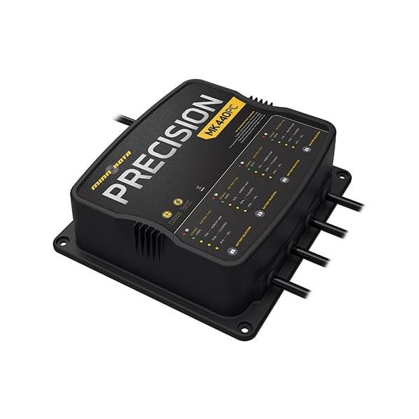 Minn Kota MK 440 PC Precision On-Board 4-Bank Charger, 10-Amp. Model 1834400. Get back in the market quicker. Stay in the market longer. The 6- and 10-amp Precision chargers have the unique ability to choose and charge different battery types by bank. This feature protects the batteries from damage because of over- or under-charging. The Precision chargers are half the weight of traditional on-board chargers. In addition they have an intuitive LED display for each and every bank that provides an independent readout of connection status, power status, percent charged and selected battery type. Get a fast, full charge even in situations where voltage into the charger has dropped. Low-Line Voltage Compensation adjusts for a drop in voltage input which will occur when an outlet is overloaded or a long extension cord is used. To offer protection to batteries, Precision chargers utilize an Automatic Temperature Compensation feature that adjusts for temperature fluctuations preventing over- or under-charging. Backed up by a three-year replacement warranty, the 6- and 10-amp Precision chargers have a rugged, durable design consumers have come to expect from Minn Kota. With a heavy-duty housing, the chargers are also fully tested to forestall corrosion in either freshwater or saltwater. The chargers are also short circuit, reverse polarity, arc and ignition secure. MK 440PC Specifications: 4 banks 10 amps/bank 40 amps total output 9.15″ x 8.25″ x 2.98″ Weight: 10 lb.