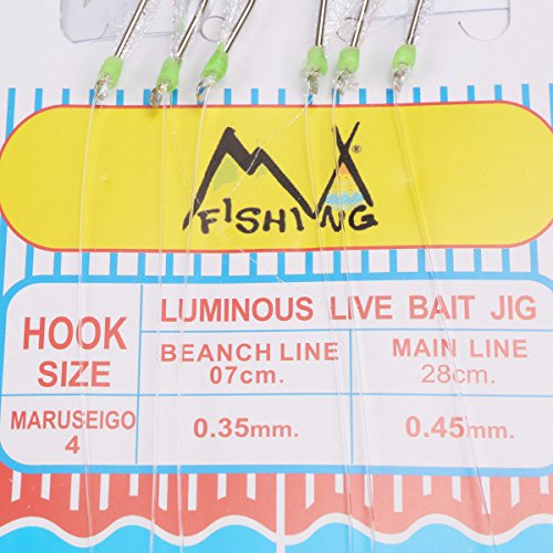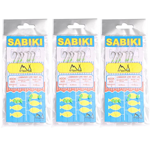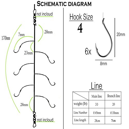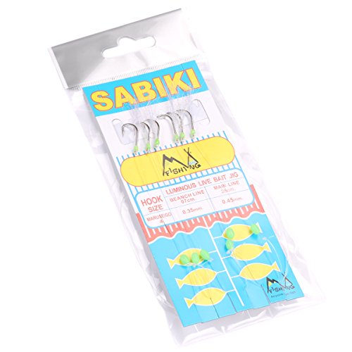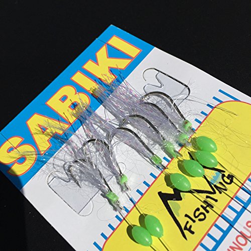 That is for 10 packages of Sabiki rigs measurement 4. Every package accommodates 6 hooks on one line the rig has a first-rate line with a branch line for Every hook,10 inches of mail traces stretches between 3 inch drop line.Every branch line has a carbon steel needle point hook with a small glow-in-the-dark bead and a skirt taste design