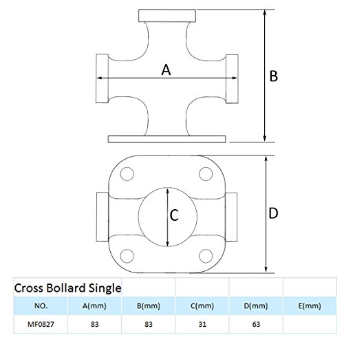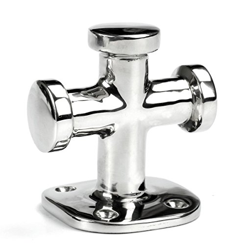 Mizugiwa Boating Bollard Heavy Duty Stainless Steel Single Cross Bollard Boat Yacht Cleat For line diameters as much as 3/8″ Most (in line with 3 strand soft twist nylon line) Dimensions: Height: 3 1/4″(83 mm) Width: 3 1/4″(83mm) Base: 2 7/16″ (63mm) Sq. Base Plate Thickness: 1/4″ (5 mm)