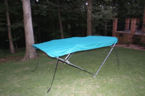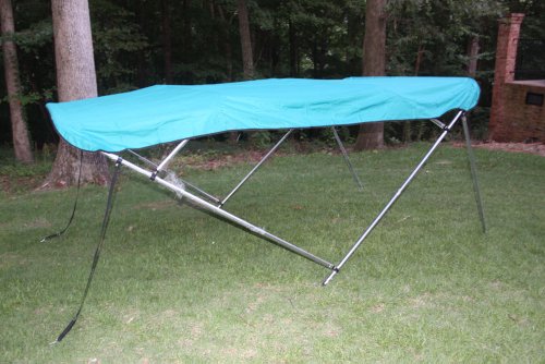 As far as the support system/framework, it is made with 1″ round tube anodized aluminum. Anodizing is just a process that increases corrosion resistance and wear resistance of a metal. Aluminum is the best metal for the framework of a bimini top. Then, it is treated to make it even better. The fittings and hardware are all heavy duty nylon and stainless steel(mounting screws hooks, and eye straps).