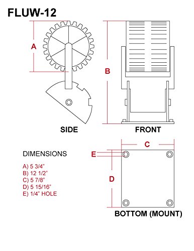Specifications: fixing plate 5.875″ x 5.9375″; height 12.5″; wheel diameter 5.75″; mounting hole diameter 1/4″; suitable for boats as much as 12′ / 440 lbs