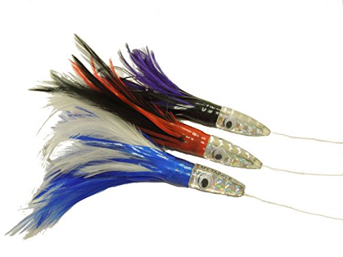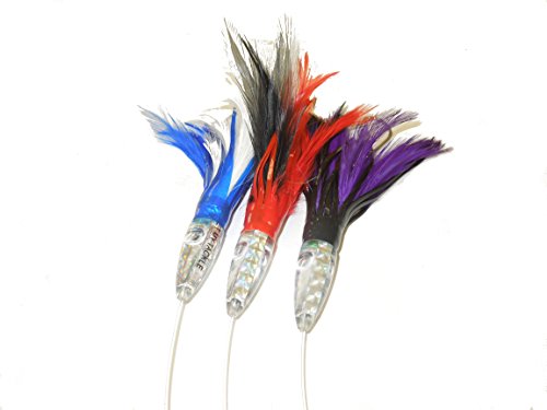 Offshore fishing lures 3 pack saltwater trolling feather jigs fully rigged in assorted colors