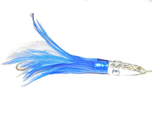 Massive 3 pack of our best possible promoting Wahoo and Yellowfin Tuna rigs. These 6″ feather lures were made favored by the Eastern fishing fleet, as a result of they work! Red and black feathered trolling jig, blue and white feathered trolling jig, and purple and black feathered trolling jig. These lures work nice for jigging or trolling. Tricky vinyl and feather skirt, holographic head that reflects deep into the water, movable eyes, 6′ leader rigged with 200 lb. mono and a #6 stainless hook double crimped. Retail: $90.00