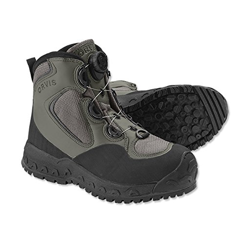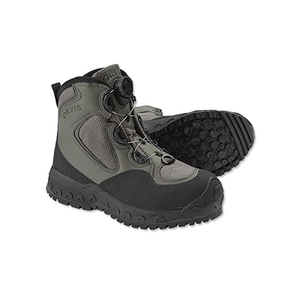 New innovations equal superb traction, comfort, and durability. The Boa Closure System teams an exceptionally durable and lightweight reel with aircraft grade stainless steel laces to provide smooth closure for a secure, comfortable, and truly customized fit. Just turn the dial to achieve the desired fit; to take the boot off, simply pull the dial out until it clicks and then pull the tongue forward. The boot’s upper is a highly durable and proven synthetic microfiber. Scratch rubber provides enhanced sidewall and heel protection, and a molded rubber toe cap provides great protection from rocks and adds to overall durability. An injection-molded EVA midsole creates a secure and comfortable footbed to cushion each step and prolong your day on the water. An exciting Orvis proprietary outsole provides stellar traction in a wide variety of aquatic environments-dual-durometer Vibram rubber and a proprietary Orvis lug pattern mean these new outsoles came to play. PosiGrip Screw-In Studs are optional if an added level of traction is desired. Weighs 3 lbs. 6 oz. in size 10.Men’s sizes 7-14. Free Standard Shipping on all Orders of $150 or more for all Orvis Products. Limited Time Only!