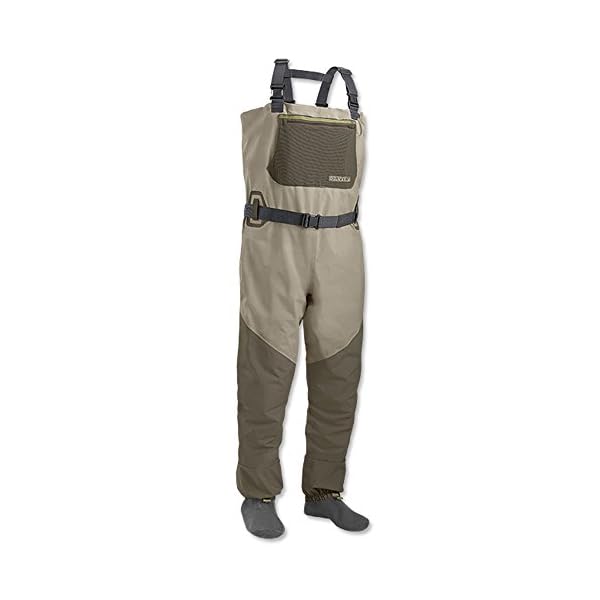 The Encounter wader is the new standard for value waders. Built from a 4-layer nylon fabric that offers an optimum balance between durability and breathability. The fit has been revamped to match our award winning Silver Sonic family of waders, and we have added a number of features that provide the angler a better overall experience. A front, kangaroo-style hand warmer pocket is combined with a mesh, zippered storage pocket for quick and easy access to critical gear. Attached, self-fabric gravel guards seal off your wading boots from sand and gravel that will shorten the life of your waders. Three integrated belt loops combined with the included wading belt provide and a safe and snug fit. Interior Velcro strip provides a placement point for our waterproof pocket (8G3H), sold separately. Anatomically correct, sculpted neoprene booties for a true fit. Outer shell: 100% nylon. Laminate: 100% polyurethane. Liner: 100% nylon. Hand wash. Imported. Sizes: S, M, L, XL, XXL. Long sizes: M, L, XL. Short sizes: M, L, XL, XXL.
