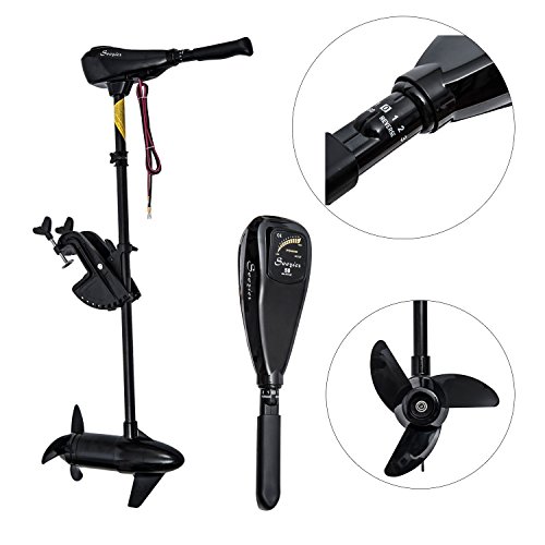 Set a course for the open seas with this durable and easy to attach trolling motor. Offering up to 50 pounds of thrust, this 12V motor is able to cruise through freshwater or saltwater so you can enjoy yourself on the water no matter where you are. The 6” telescoping handle allows for five forward speeds and three speeds in reverse. The motor can be mounted in ten different positions with the lever lock bracket to make installing extra simple. With a composite shaft and metal head this motor is exceptionally sturdy and durable so you can take it on all sorts of adventures.