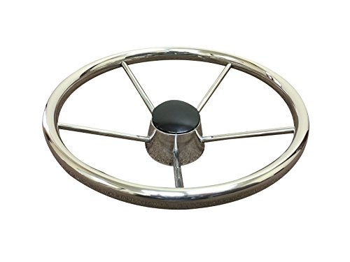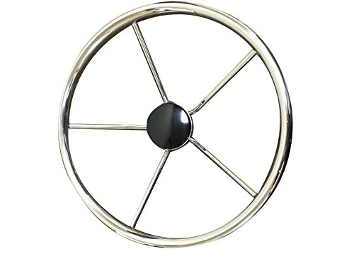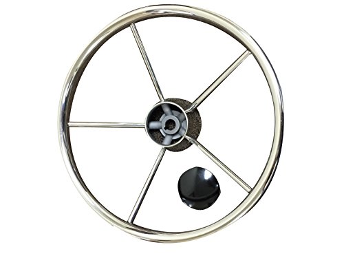 Pactrade Marine Boat Five Spoke Steering Wheel with Black Cap SS304, 13.75″ L
