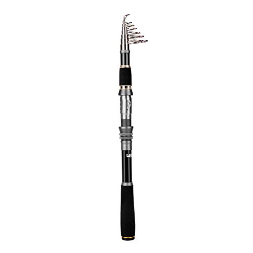 Perfect elasticity, high density Carbon fiber mixed with fiberglass make your fishing pole hard & durable. Stainless Steel Hooded Reel Seats is anti-seawater corrosion; EVA Fore Grip for comfort. The telescopic fishing rod is portable, and closed length design is convenient carrying around. Power: Medium; Extended Handle.
