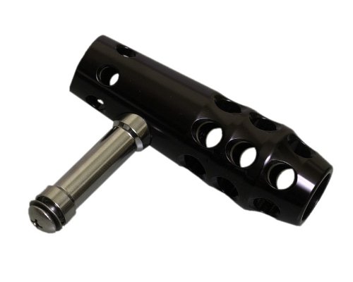 The complete handle includes an aluminum handle blank and knob and weighs about 4 oz. The knob incorporates a 9 degree offset to provide increased torque. The knob is constructed of 6061 Aluminum and incorporates a ball bearing in the shaft. This hollow aluminum knob is extremely light weight and incredibly comfortable. The 6061 aluminum handle blank is about 3″ in length. Handle blank and t-Bar knob are both BLACK.