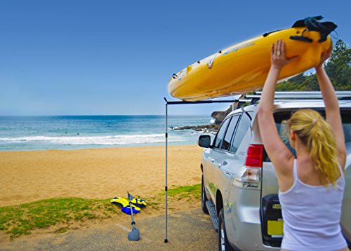 The Rhino-Rack Universal Side Loader assists you in loading your kayak, ladder, camping gear or other longer heavy items, onto your roof rack crossbars. Simply lift one side of your load onto the Rhino Universal Side Loader, then pivot your load onto your crossbars. Be sure you tie down your load once it’s safely at the crossbars the use of our non-stretch load rated fastening straps.