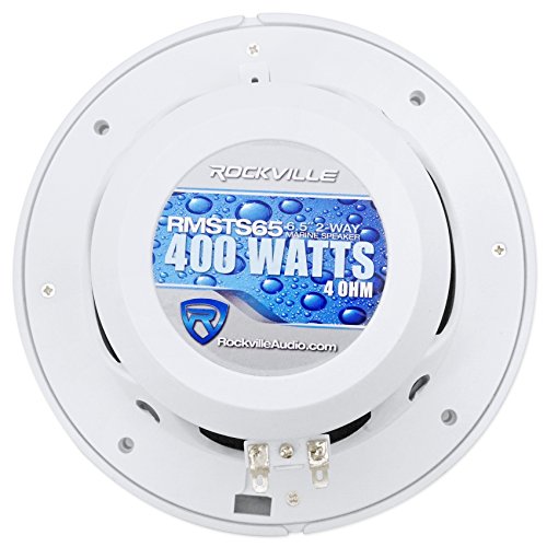 Rockville RMSTS65S 6.5″ 2-Way 800 Watt Marine Boat Speakers in Silver (Pair). CEA Compliant Power Ratings. Power Rating: 400 Watts Peak /100 Watts RMS Per Speaker.