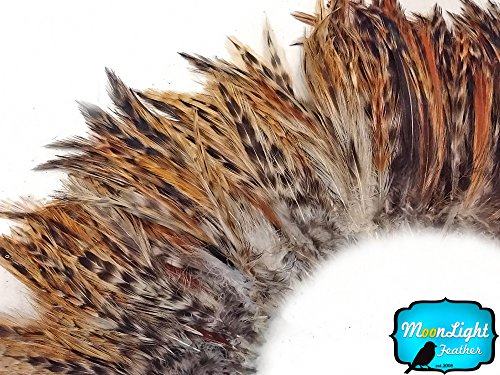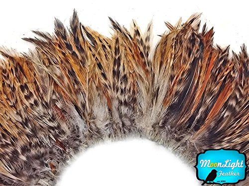 This listing is for 4 inches of beautiful natural red chinchilla rooster neck hackle feathers along the stitch, sometime it may not come in a continuous strip. There are about 60-80 feathers in this listing. The length of each of these rooster feathers ranges in length from 4-6 inches.These are extremely beautiful and expensive natural red chinchilla rooster neck hackle feathers with some black barring. The color pattern may vary because each chicken has slightly different color on it. This is a thickly strung material, providing a large amount of feathers in a small section. This craft feather style can also be easily separated into individual feathers. These are highly sought after rooster feathers for its special color and pattern. Neck hackle feathers are slightly stiffer than saddle or schlappen feathers. They are great for arts and craft, costume, performance, fly tying, decoration, and more. Feathers vary widely in shape and sizes. There will be a mixture of good and bad feathers but you will be sure that you are getting mostly good feathers. Wholesale and quantity discount is available.Thanks for looking.