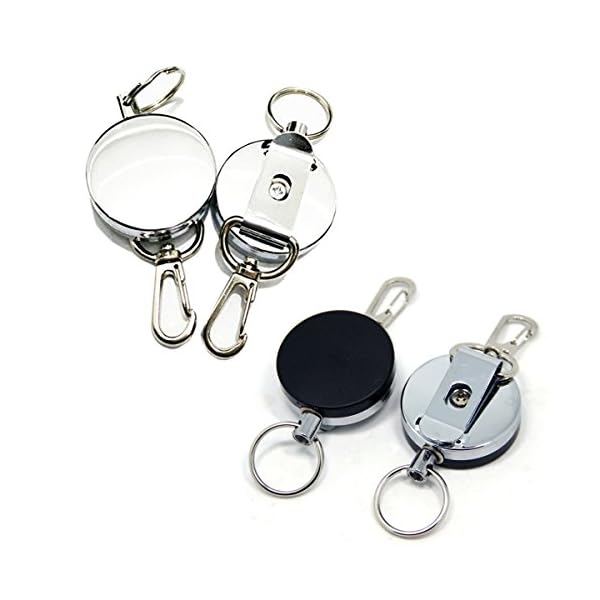 SAMS Metal Retractable Key Chain Keys Reel Badge Holder W/ Belt Clip with Stainless Cable 2pcs Packed