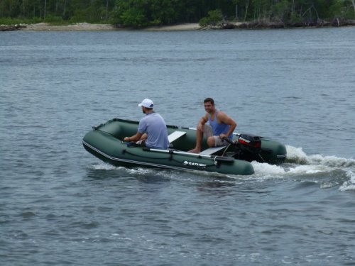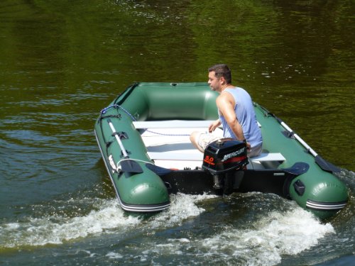 You can place beach chairs or even fit beach lounger inside this boat. Or could also be small table and chairs. Regardless of being wide and heavy, this boat can plane even with a small 2-stroke 5HP outboard motor. See video below.