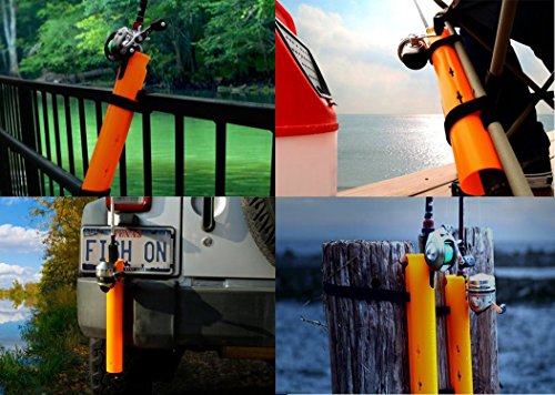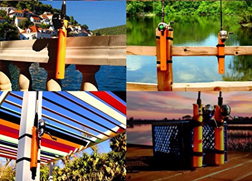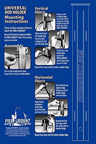 2 Pack of Rod holders package also contains 4 Anchor straps. The Pier-A-Mount Universal Fishing Rod Holder is the only Rod Holder that can attach to Horizontal or Vertical objects with No Tools No Damage and No Hassle. It Mounts and Removes Quick and Easy and stands up to the toughest conditions. The Pier-A-Mount is Longer and has a Larger Diameter than average rod holders allowing it to span railings and accommodate both standard and larger rods. It will attach to Chairs, Rails, Racks, Bumpers, Crates and just about any Round Square or Odd shaped object.