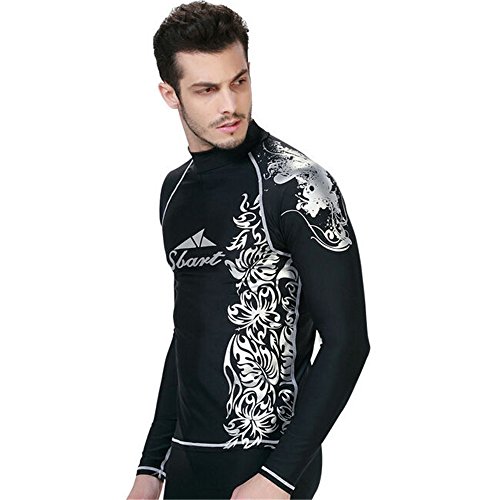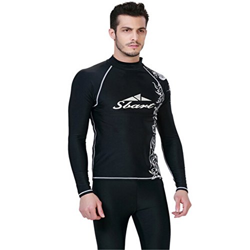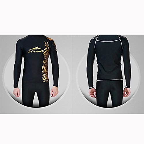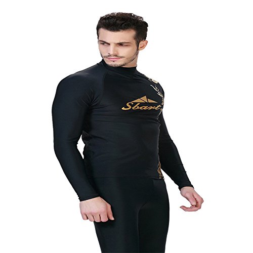 Sbart Men Wetsuit Top with Golden and White Pattern for Swimming and Diving (Black)