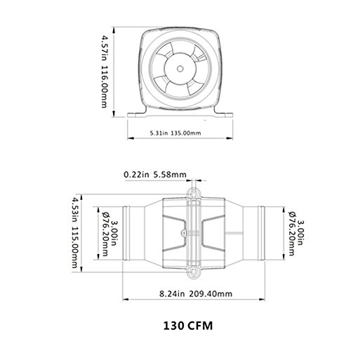 Marine Boat Electric Bilge Air Blower, 12v/2.5Amp, 130CFM, 3″ Outlet Hose