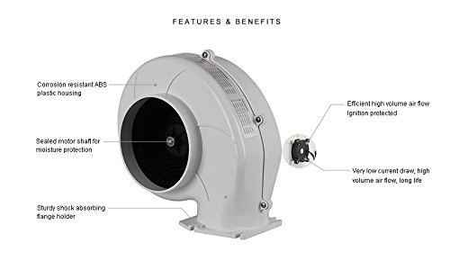 Supplies ventilation for Engine Compartments, Galleys, Bilges, Heads Racecars, Buses, Tanning Booths, Blow Up Signs, Building Ventilation Hi-Float 320 CFM capacity As much as 25% more efficient than standard in-line blowers Front and rear shaft seals White Corrosion-Resistant ABS plastic construction Simple to mount – flange mount Installation and Operating Directions Included! Does now not come with mounting screws