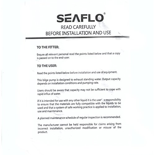 The bilge pump is designed to exhaust standing water.Output capacity is dependent upon installation conditions and pumping rate.