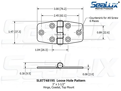 Pair SeaLux Marine Marine Grade corrosion-resistant hinges Stainless Steel 3″ x 1.five” Door Hinge