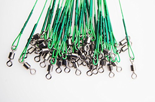 Shaddock Fishing ® 100Pcs Fishing Leaders Nylon-coated Stainless Steel Wire Leaders Rigs Fishing Line with Swivels and Snaps-Green Color
