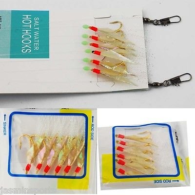 Shaddock Fishing 5-20 Packs Assorted Sabiki Rigs Glow Sabiki Shrimp Bait Rigs Rigged Fishing Lures/Feathers Hooks with Ball Bearing Swivel Interlock Snap Connector