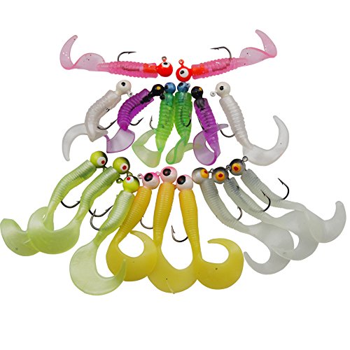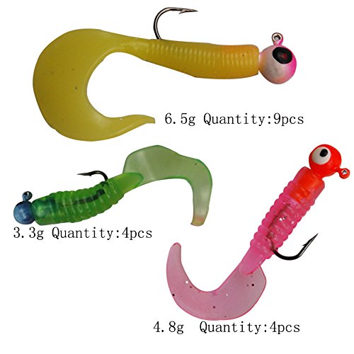 17Pcs worm tail lures.Weight: 3.3g,4.8g and 6.5g