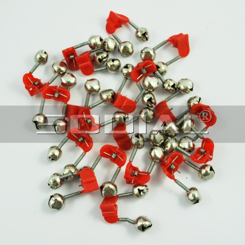 * SODIAL(R) 20 Pcs Fishing Rod Alarm Dual Alert Bells Red Silver Tone