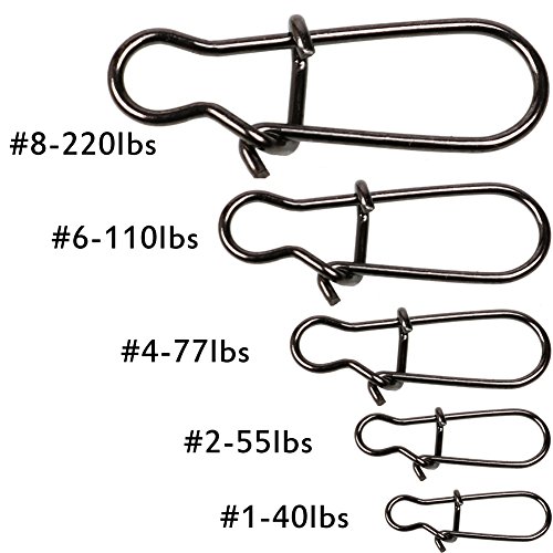 100pcs Fishing NICE swivel, size #1-#8(Small-Big). Approved for using in saltwater, high speed trolling, jigging, offshore fishing. Small size would work great for freshwater like bass fishing.