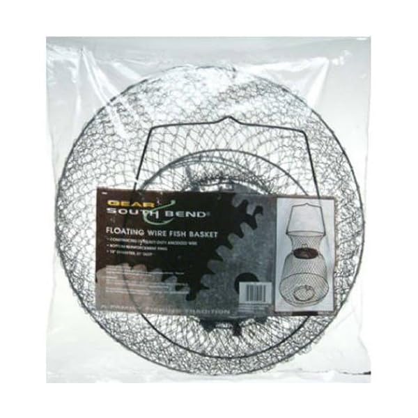 Long lasting floating fish basket with both top and bottom spring loaded trap doors. Top door of tough styrene for extra strength. South Bend wire fish baskets are manufactured from the finest materials and feature uni-chrome plating to resist rust and corrosion. All hinges are reinforced and trap doors feature dual-spring operation. Size: 15″ x 21″. Packaged individually in printed poly bag.