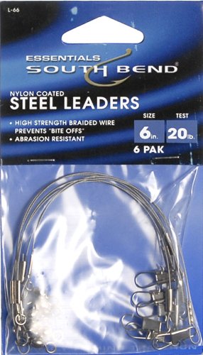 All South Bend leaders are manufactured with quality snap swivels and are wire-wrapped for maximum strength. Prevents “bite-offs” and is abrasion resistant.
