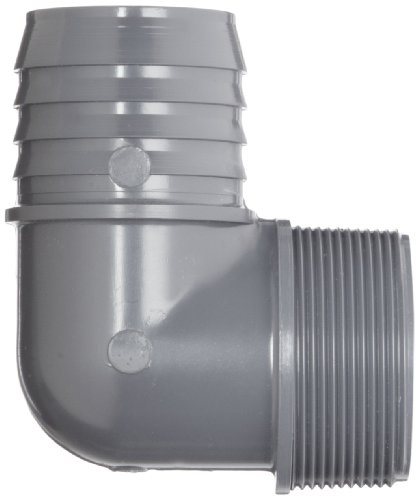 Spears 1413 Series PVC Tube Fitting, 90 Degree Elbow, Schedule 40, Gray, Barbed x NPT Male
