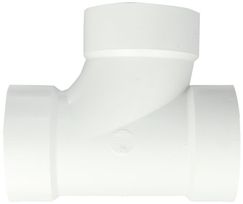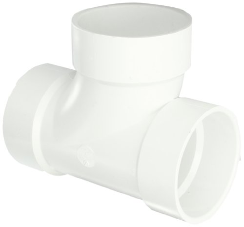 The Spears P400 series DWV sanitary tee is made of PVC, has hub connections on both ends, and is suitable for waste water systems in residential applications. This sanitary tee fitting is T-shaped and has three ends to connect and branch three pipes, two on the main run and one branch at a 90-degree angle from the middle of the tee. Internal construction moves the glide at a gradual angle to prevent clogging. Pipe dimensions for tees are represented as A x B x C. “A” and “B” indicate the main run on the fitting, and “C” indicates the branch. The hub connections slide over the ends of male unthreaded pipes with a smooth bore for enhanced glide. This fitting is made of PVC (polyvinyl chloride) to be used in non-pressure residential drain, waste, vent (DWV) sanitary systems. PVC resists corrosion and chemicals, exhibits high strength, and weighs not up to fittings made from metal. PVC may also be connected to other materials such as steel, copper, or cast iron the usage of transition fittings. It has an operating temperature range of 73 to 140 degrees F (23 to 60 C). This DWV sanitary tee complies with American Society for Testing and Materials International (ASTM) D2665 and ASTM D3311 for quality assurance, is National Sanitation Foundation International (NSF)/American National Standards Institute (ANSI) Standard 14 certified to the Uniform Plumbing Code (NSF – U.P. Code) and NSF-dwv for quality assurance, and conforms with lead content requirements for “lead free” plumbing as defined by California and Vermont. It is suitable for waste water systems in residential applications.