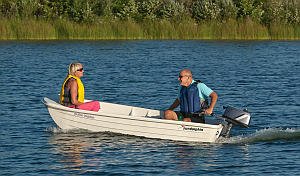 The WaterTender 9.4 is flexible enough for use as a dinghy, fishing boat, or utility rowboat. The modified cathedral hull design and broad beam assure a soft, dry ride, very good stability and coffee draft at the same time as maximizing interior area. The WaterTender 9.4 rows true and straight, and is gentle enough to be powered by a small outboard motor or trolling motor. Fits behind pickup for portability so a trailer isn’t essential. Proudly made in U.S.A.