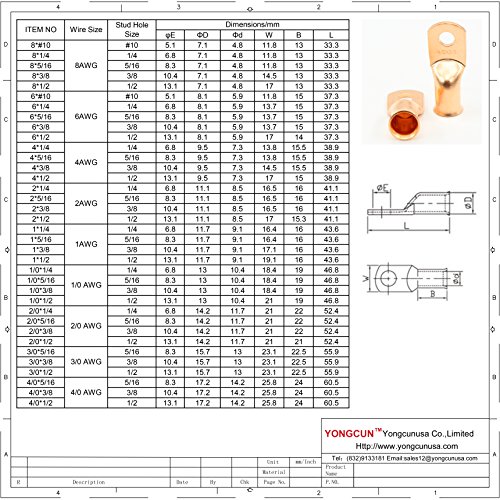 T04 Yongcun Cable Lugs Battery Terminals Tubular Cable Lugs Copper Lugs
