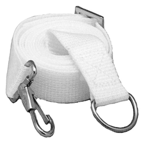 Taylor Made Merchandise Marine White Adjustable Tie-Down Strap is outfitted with ring at one finish and snap at the different. Offered in pairs.