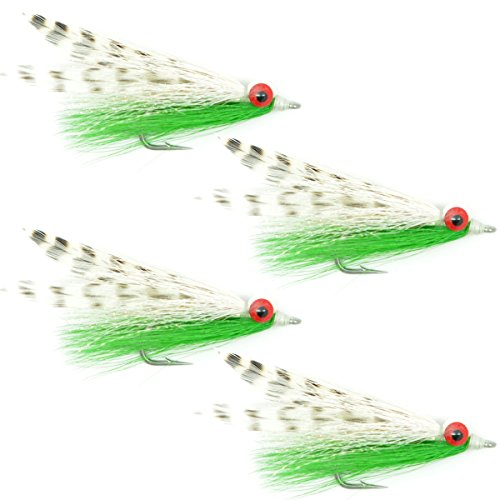 The Fly Fishing Place Clouceiver Lefty’s Deceiver – Clouser Minnow Hybrid Fly Fishing Flies – 4 Saltwater and Bass Flies – Green/White – Hook Size 1/0