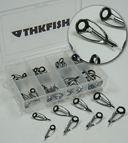 THKFISH Freshwater Saltwater Black Silver Tarnish Fishing Rod Parts Tip Tops Black Stainless Repair Guides DIY Set Kits