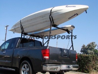 This Kayak Carrier designed mounts to virtually all crossbars and load bars on the market. The carrier secures the kayak on its side, consuming minimal space on the load bar. As shown in the pictures we put the Kayak Rack on the Ladder Rack Bar.(sold separatly). A maximum of 4 sets of kayak racks can be mounted on a full size truck. Save your space.