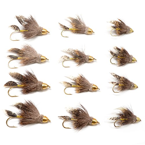 Fishing, Fishing Lures, Baits & Attractants, Hard Lures, PlugsTrout Fly Assortment – Cone Head Muddler Minnow Streamer Flies Collection – 1 Dozen Flies – Sizes 2, 4, 6