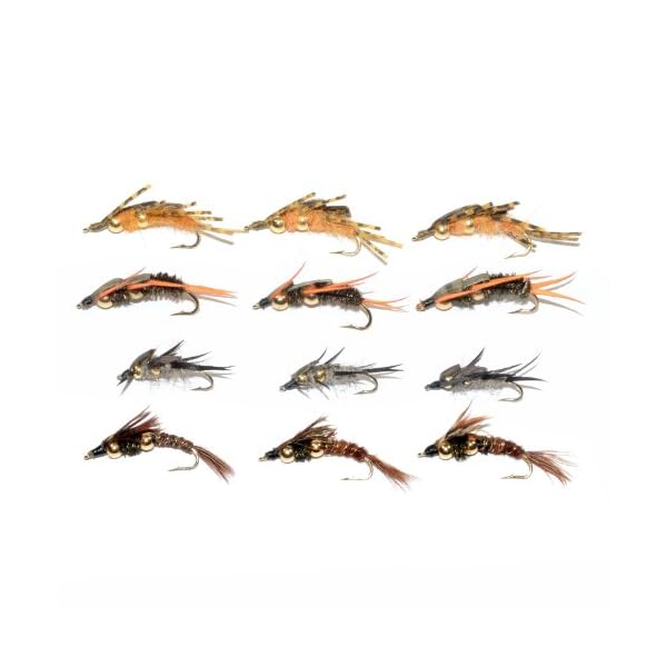 Trout Fly Assortment – Double Bead Nymph Collection 1 Dozen Weighted Nymph Fly Fishing Flies – Hook Sizes 8, 10, 12