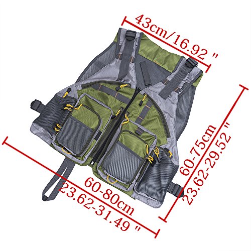 Fishing vest features multiple sturdy zip pockets & pouches for storing fishing gear & tools of all sizes.