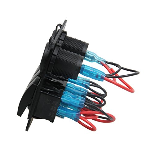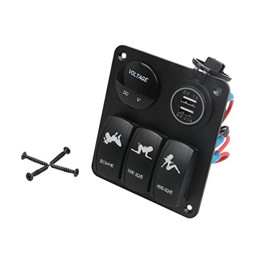 Vennas Marine Car Switch Panel 3 Gang with 1 Charger With 2 USB Slot Blue LED Light 5pin On/off Rocker Switch