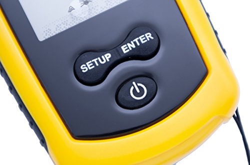 Various features settings: 5 user selectable sensitivity; battery save mode; backlight mode; fish alarm; unit of measure. Water depth shows by meters/feet